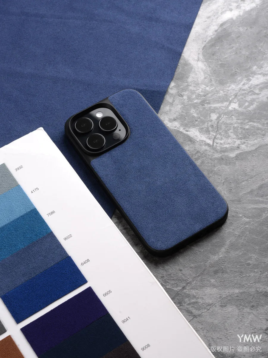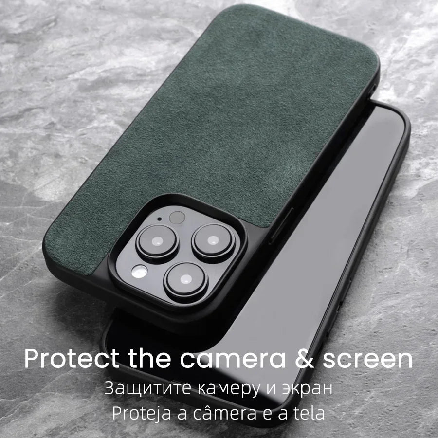 Capa ALCANTARA p/ iPhone 11–16 (Pro/Max) – Luxo, antiderrapante, lavável