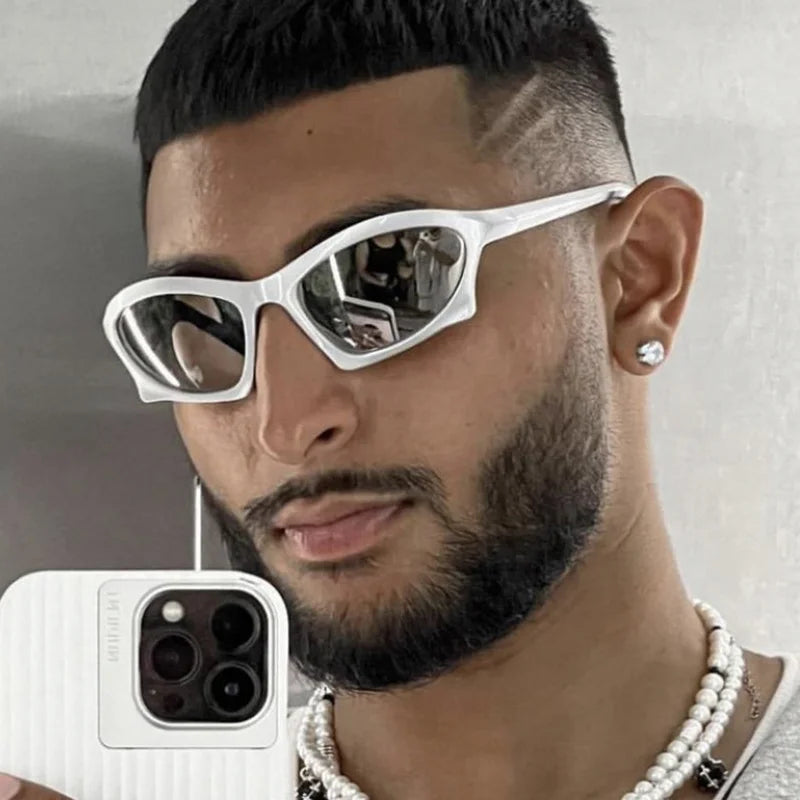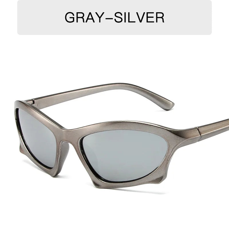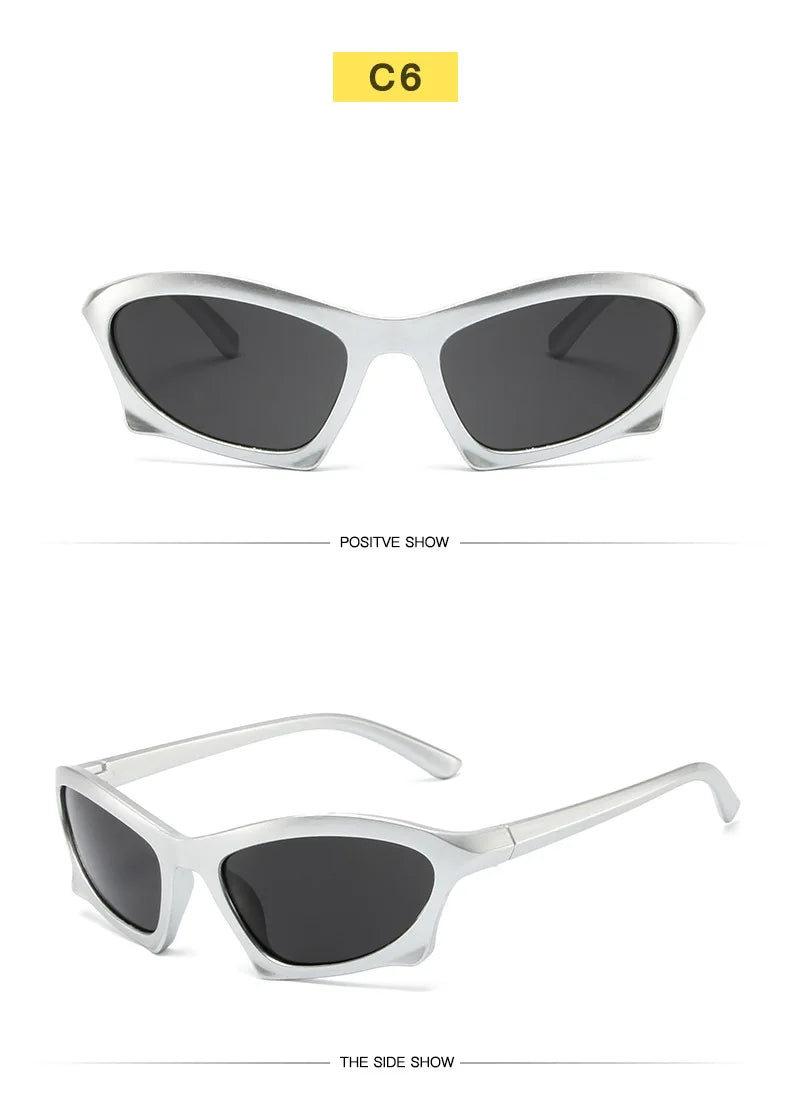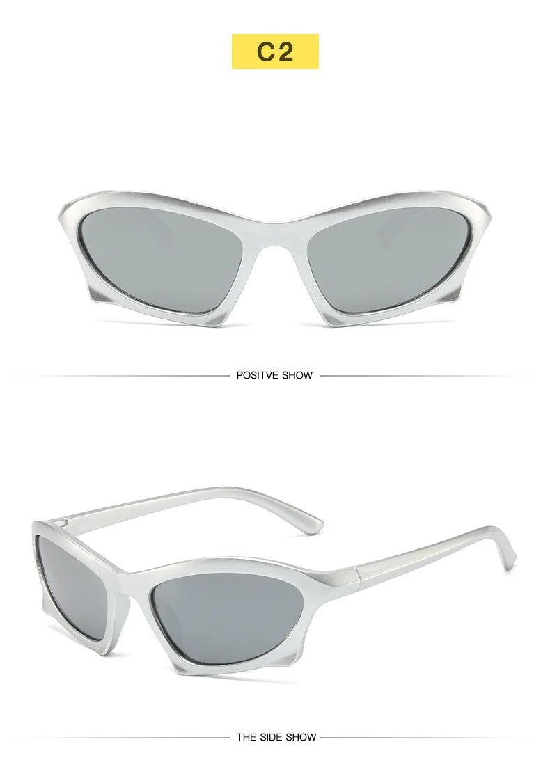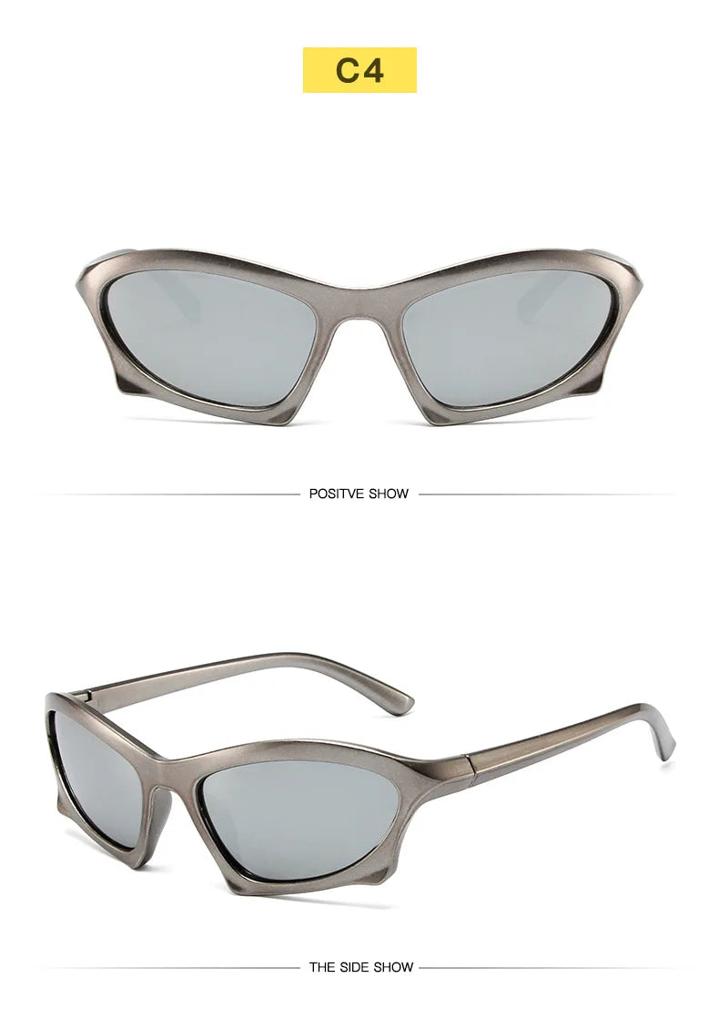 Design “goggle” estilo punk • Lentes espelhadas UV400 • Armação leve em policarbonato